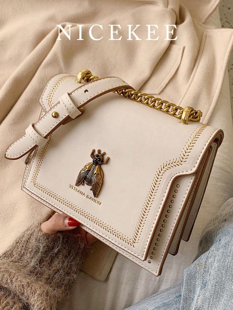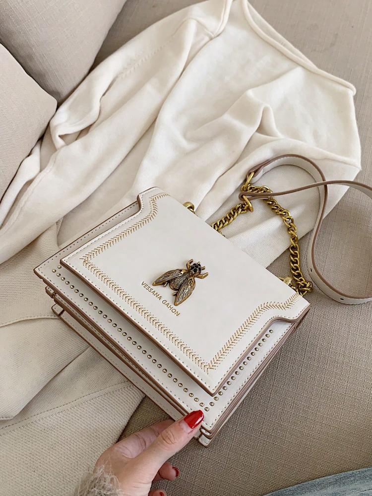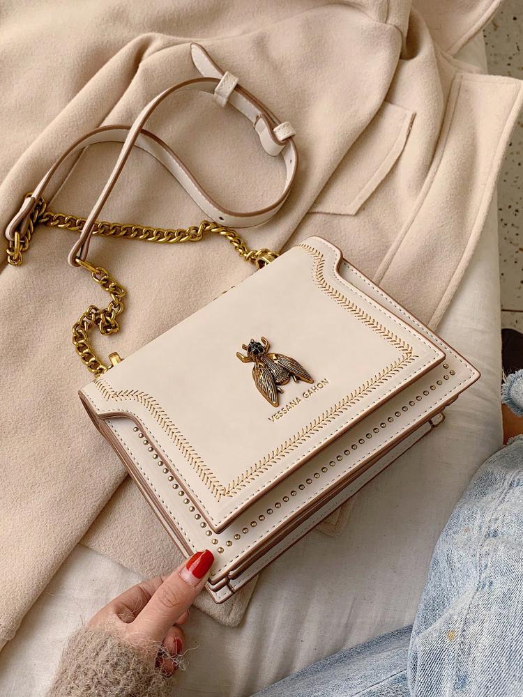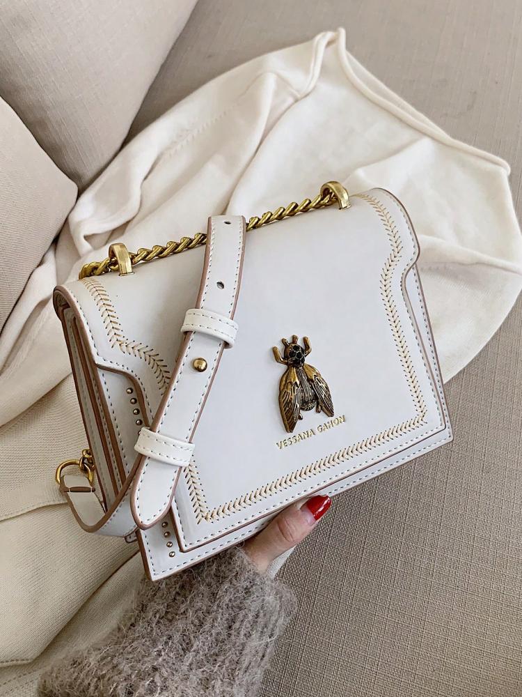 حقيبة كتف للبنات بتصميم عصري وجذاب مزينة بزخرفة نحلة ذهبية تضيف لمسة مرحة وأنيقة لإطلالتك اليومية، حجمها الصغير يجعلها مثالية لحمل الأساسيات بسهولة مع سهولة التنسيق مع الملابس الكاجوال والمناسبات الخفيفة.